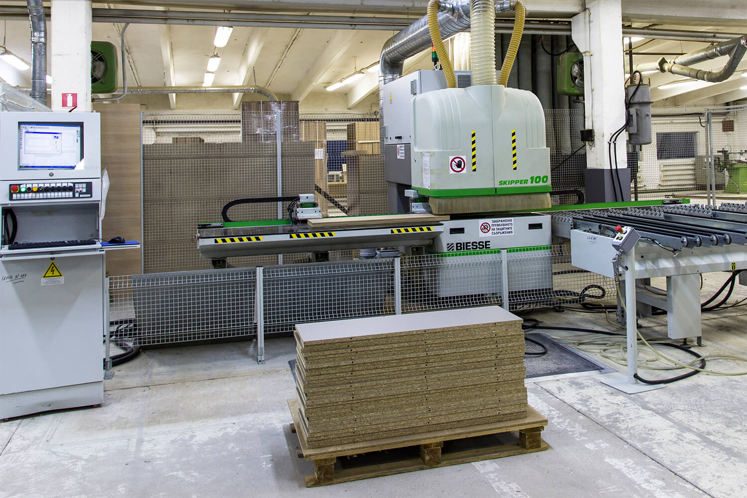 - Съществен и добре структуриран машинен парк (CNC, кантиращи, разкройни линии, преси), вкл. модерна камера за боядисване и съоръжения за полиране