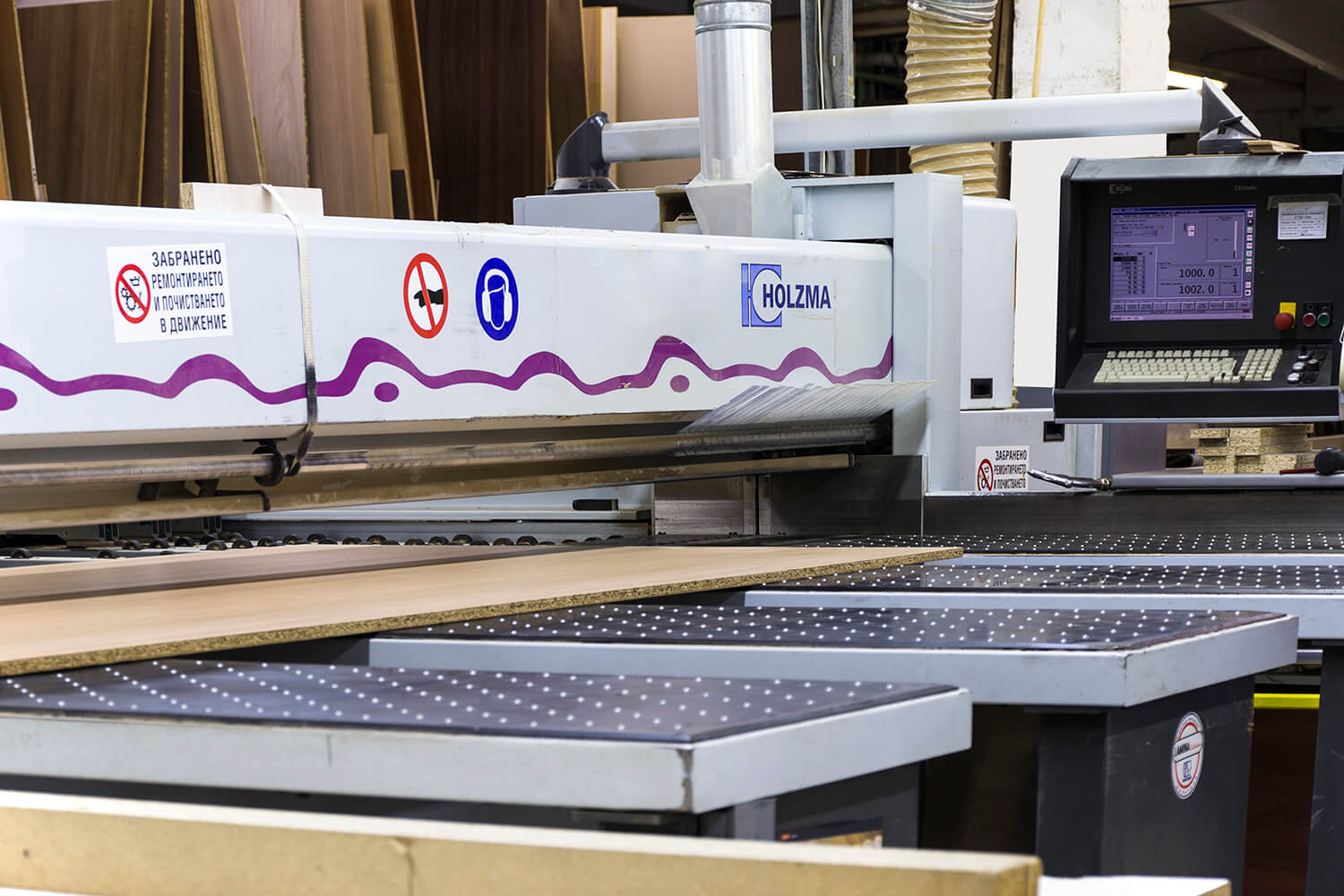- Структурата на машинния парк е технологиите позволяват обработка на всички видове плоскости, кантиране, разпробиване, огъване, лепене и други.
